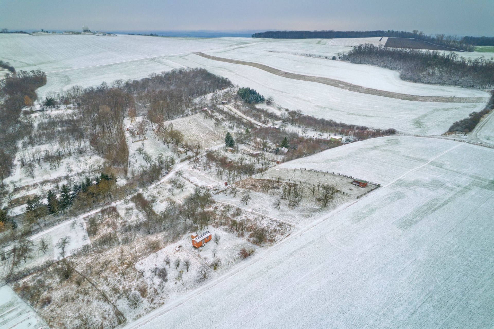 Je kompletně zařízen a funguje jako ostrovní systém. Od napájení elektřinou a vodou po kompostovací toaletu, ledničku a sprchu.